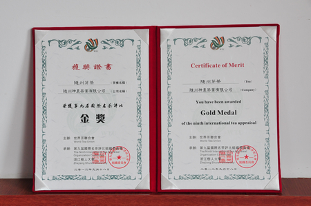 2012年9月,我公司生產(chǎn)的“隨州芽茶”榮獲第九屆國際名茶評(píng)比“金獎(jiǎng)”